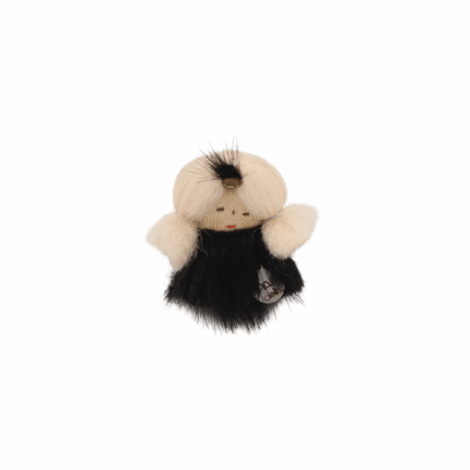Elevate your style with this one piece handcrafted eco-friendly bag charm, featuring a doll adorned with a sapphire-like jewel and soft ruby fur. A chic blend of heritage and fashion, it’s the perfect accessory to add personality and elegance to your handbag.